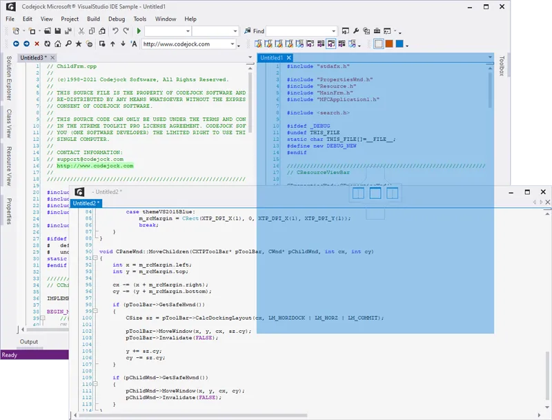 MDI tear-offs make it simple to work with a number of documents simultaneously while having all documents visible. It is an invaluable feature for applications that can be used in multi-monitor environments as it is possible to fill all monitors with the detached windows of one application.